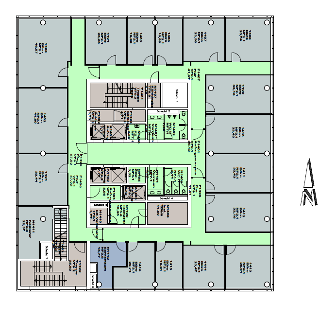von ca. 1.500 m². Im Haus gibt es sowohl Zellenbüros als auch Open-Space Flächen.