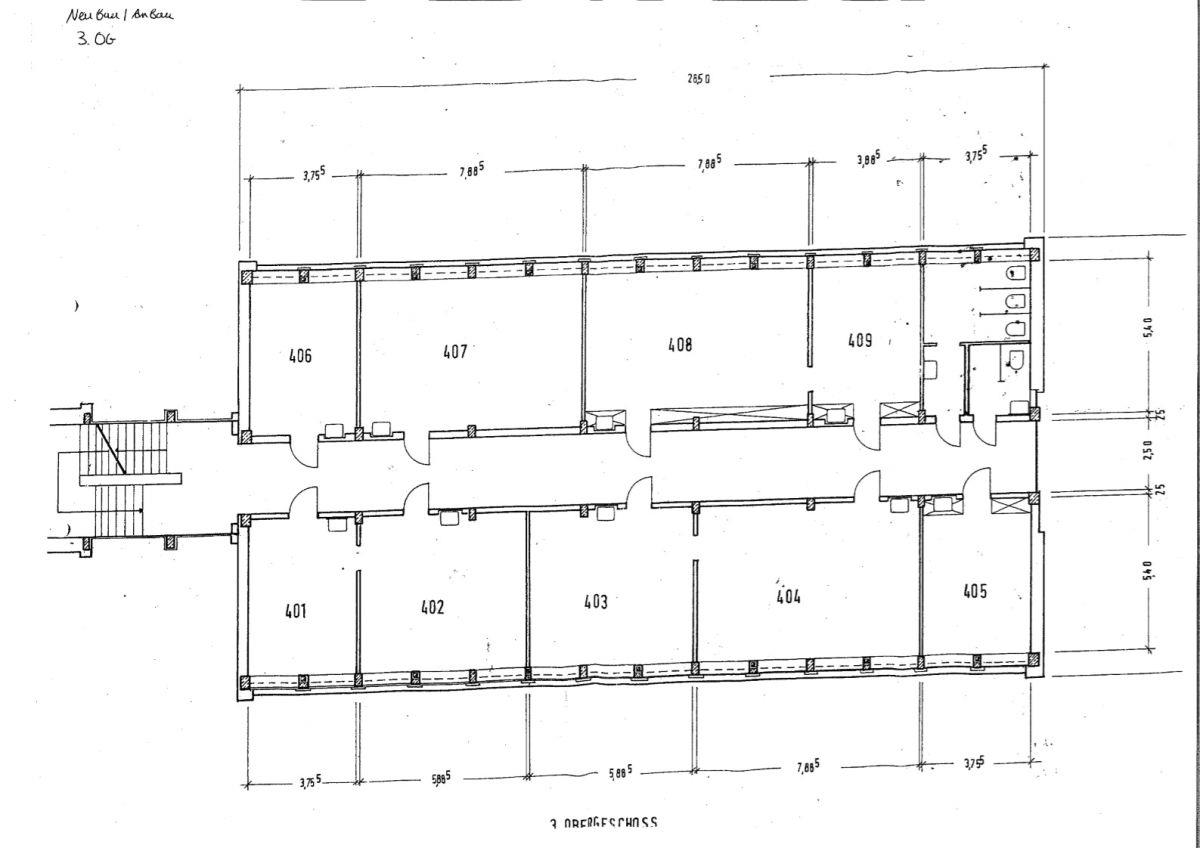 Die Büroimmobilie erstreckt sich über zwei bis drei Geschosse, welche sich jeweils auf den Alt- und Neubau verteilen. Dem Nutzer stehen zahlreichen Außenstellplätze zur Verfügung, welche angemietet werden können.
