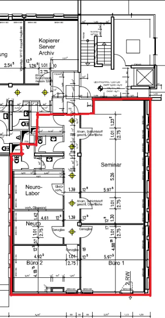 Derzeit stehen zwei Büroflächen zur Vermietung: Im 1. Obergeschoss befindet sich eine Einheit mit einer Fläche von rund 276 m² und im 2. Obergeschoss eine weitere Bürofläche mit etwa 177 m² verfügbar ist. Darüber hinaus wird eine zusätzliche Fläche im Erdgeschoss mit einer Größe von ca. 852 m² voraussichtlich ab dem 01.09.2027 zur Verfügung stehen.