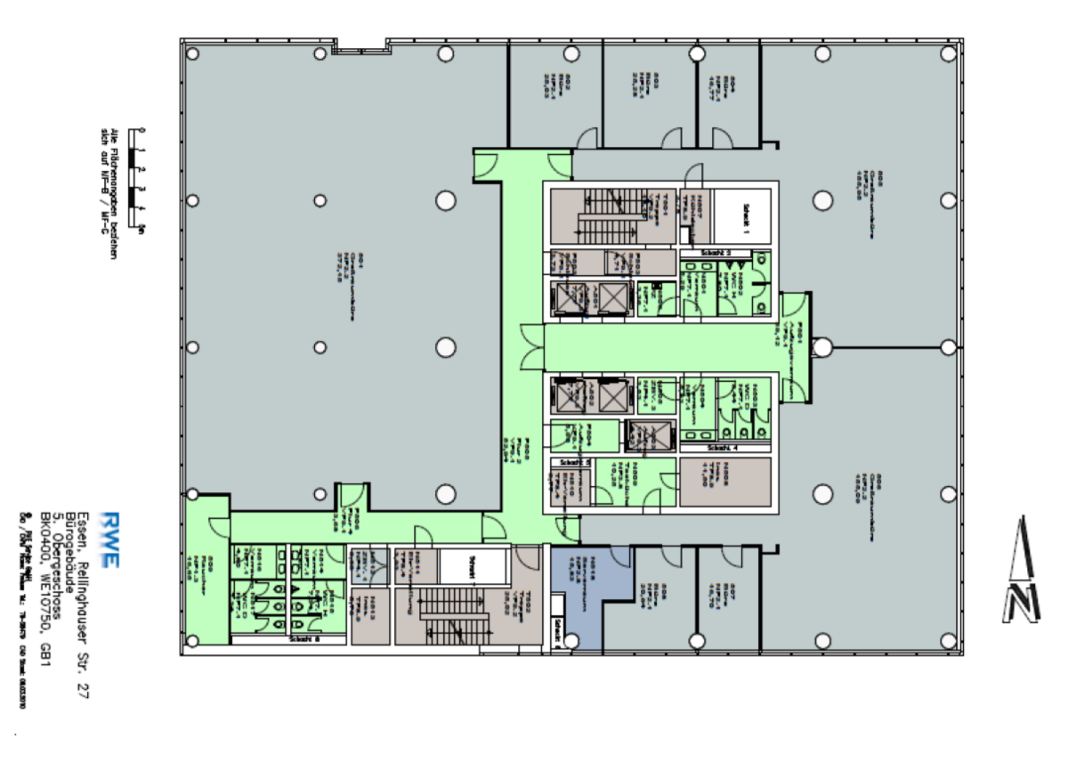 Bei der Immobilie handelt es sich um einen Konzernsitz in direkter und fußläufiger Nähe zum Essener Hbf. Das Objekt verfügt über ein repräsentatives Foyer und einen besetzten Empfang. Die Büroetagen sind über das Treppenhaus oder per Aufzug zu erreichen. Die Gesamtmietfläche (Büros,