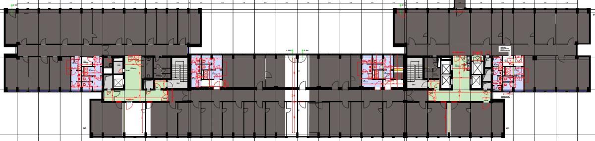 Die Fläche im Ergeschoss ist teilbar ab 247,80 m². Die Flächen im 1. OG bis 5. OG jeweils ab 366,55 m².
