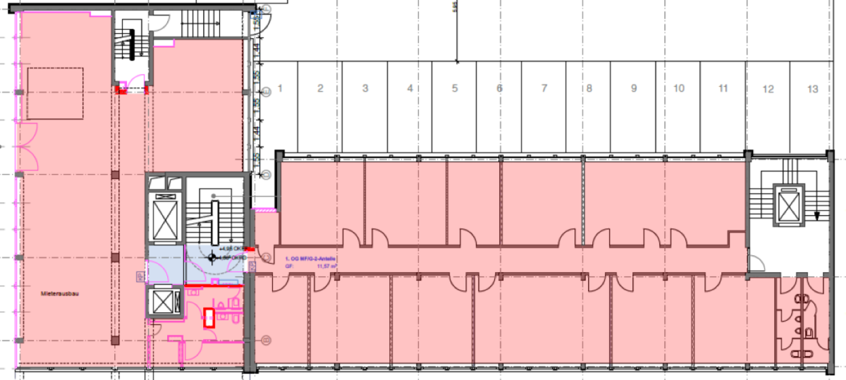Der 1965 erbaute, repräsentative Büro- und Ladenlokalkomplex wurde 2017 aufwendig renoviert. Die Ladenflächen sind ebenerdig zu erreichen und sorgen für ausreichend Tageslicht durch die 22 m Fensterfronten. Ferner bietet das Gebäude eine flexible Raumaufteilung und sorgt somit für eine individuelle Raumgestaltung des Nutzers.
