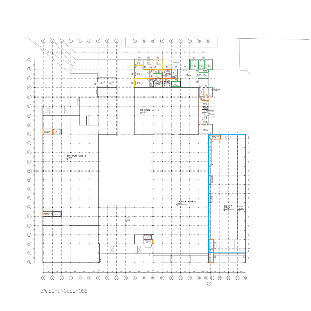 Zwischengeschoss (Büro): 610 m²