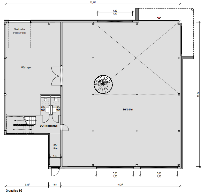 • ebenerdiges Sektionaltor mit 3,00 m Breite und 3,50 m Höhe