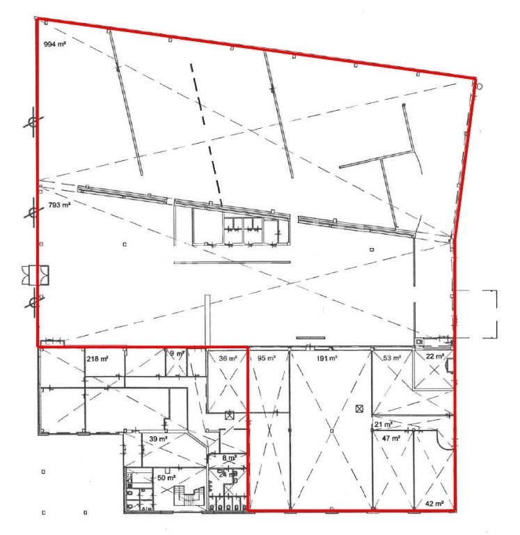Die Liegenschaft verfügt über ein ebenerdiges Flügeltor, eine Belüftungsanlage, eine Solaranlage sowie sehr viele PKW-Stellplätze und bietet vielseitig nutzbare Flächen, darunter insgesamt 1.787 m² Ausstellungsfläche, geeignet als Lagerhalle, Showroom oder für Freizeitstätten, sowie insgesamt 471 m² Büro- und Sozialfläche mit Einbauküche, Sanitärbereichen.