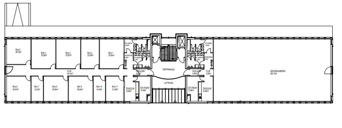 Die Konzeption des Gebäudes, welche stützenfrei funktioniert, lässt jegliche Raumkonzepte zu. Vom Open-Space bis hin zur Einzelverzimmerung können jegliche Ausbauten Mieterwunsch entsprechend realisiert werden.