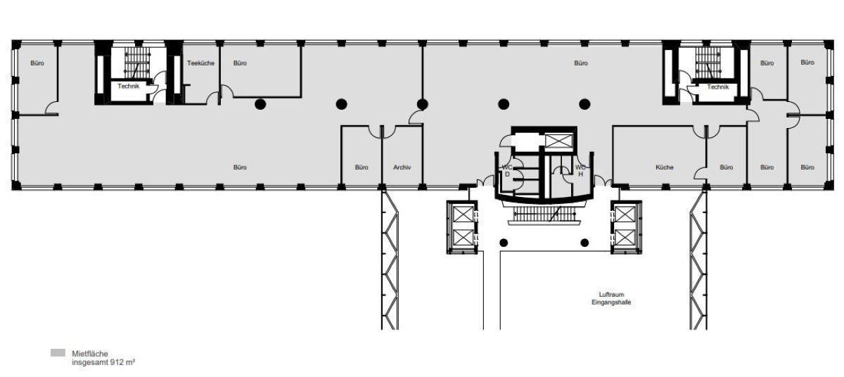 Ferner bietet Ihnen das Objekt flexible Grundrissvarianten, welche die Möglichkeiten Großraum-, Gruppen-, und Einzelbüros beinhaltet.