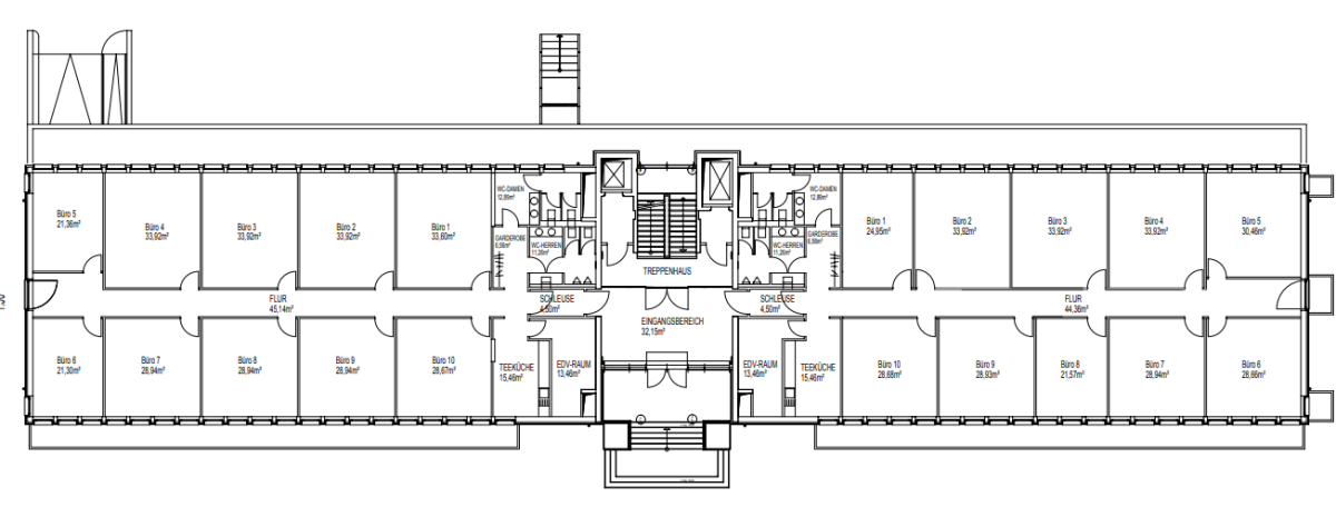 Die Konzeption des Gebäudes, welche stützenfrei funktioniert, lässt jegliche Raumkonzepte zu. Vom Open-Space bis hin zur Einzelverzimmerung können jegliche Ausbauten Mieterwunsch entsprechend realisiert werden.