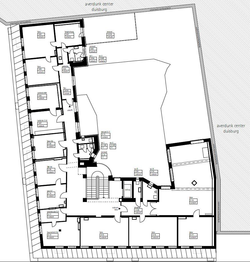 Die zur Disposition stehende renovierte Fläche befindet sich in einem renommierten Bürogebäude in der Duisburger Innenstadt. Die Fläche liegt im 5. Obergeschoss des Gebäudes und ist mithilfe eines Personenaufzuges oder über das nostalgische Treppenhaus zu erreichen. Neben hochwertigem Fischgrätparkett besticht die Fläche über ihre Dachterrasse, die zum Hinterhof raus gelegen ist. Das Objekt verfügt über eine familienführte Hausverwaltung, die sich direkt im Gebäude befindet und dem Nutzer einen festangestellten Hausmeister zur Verfügung stellt. Parkflächen können bei Bedarf in der Tiefgarage angemietet werden.