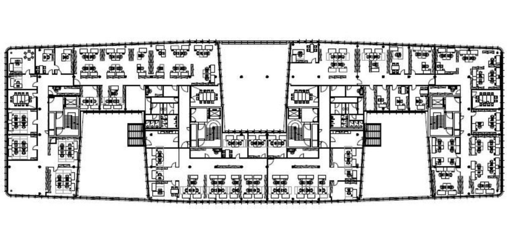 Die moderne Büroimmobilie liegt im begehrten Duisburger Innenhafen. Das Gebäude ist so konzipiert, dass alle Geschosse in zwei Abschnitte à 1.200 m² nutzbar sind. Die Büroflächen können in Form von Einzelbüros, aber auch Open Space genutzt werden. Die gehobene Ausstattung und die vielen Fenster bieten eine optimale Voraussetzung für einen modernen Arbeitsplatz. Die Büroflächen sind mit einem Teppichboden, teils aber auch mit Laminatboden ausgestattet. Die CAT-7 Verkabelung verläuft über Bodentanks. Ferner sorgt ein außenliegender Sonnenschutz für die Abdunklung der Flächen. In der hauseigenen Tiefgarage stehen zahlreiche Parkplätze zur Anmietung bereit. Das Highlight der Immobilie bildet die großzügige Dachterrasse.
