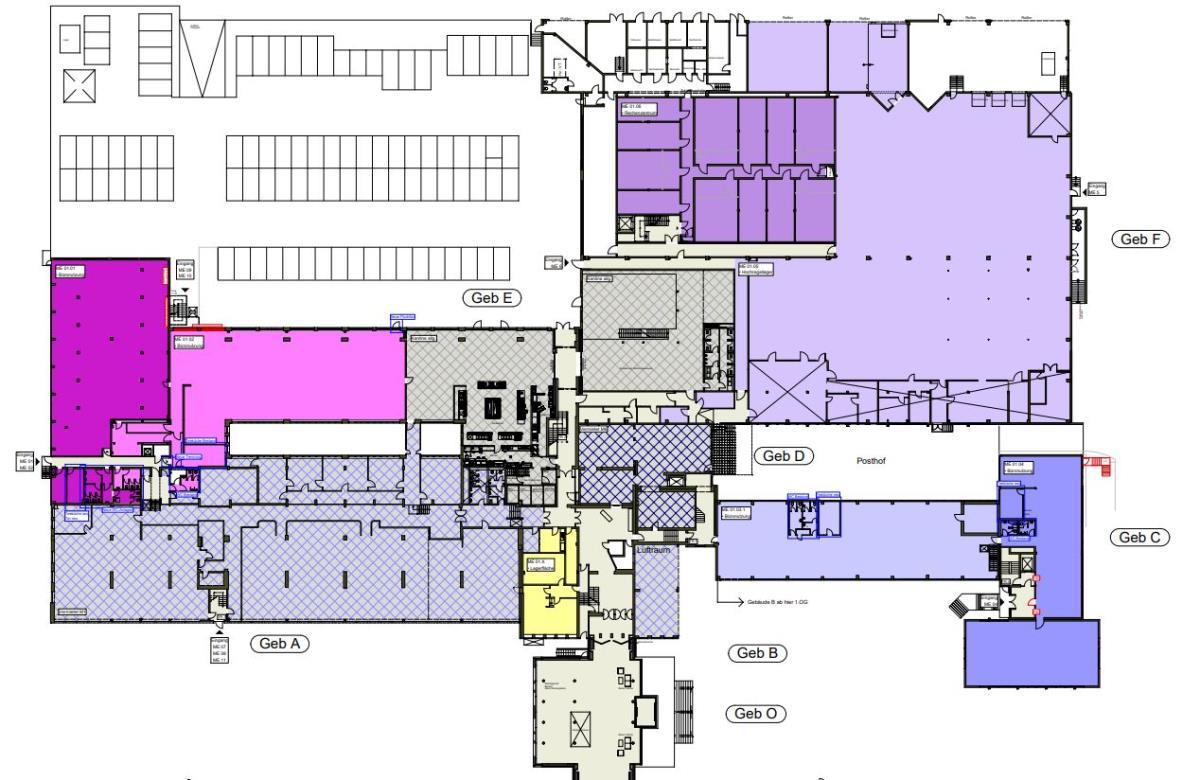 Der repräsentative Büro- und Lagerkomplex verfügt über einen eindrucksvollen Eingangsbereich mit zentral besetztem Empfang. Durch die helle Eingangshalle gelangt man mithilfe des Treppenhaus und den Personenaufzügen problemlos in alle Etagen des Gebäudes. Die Büroflächen sind mit einem Teppichboden, teils auch mit Laminat ausgestattet. Die Verkabelung verläuft über Bodentanks. Dem Mieter steht eine hauseigene Kantine zur Verfügung. Ferner können Parkplätze im Parkhaus angemietet werden. Die Büros sind voll klimatisiert. Ein Glasfaseranschluss liegt bereits im Gebäude und garantiert schnelles Internet.