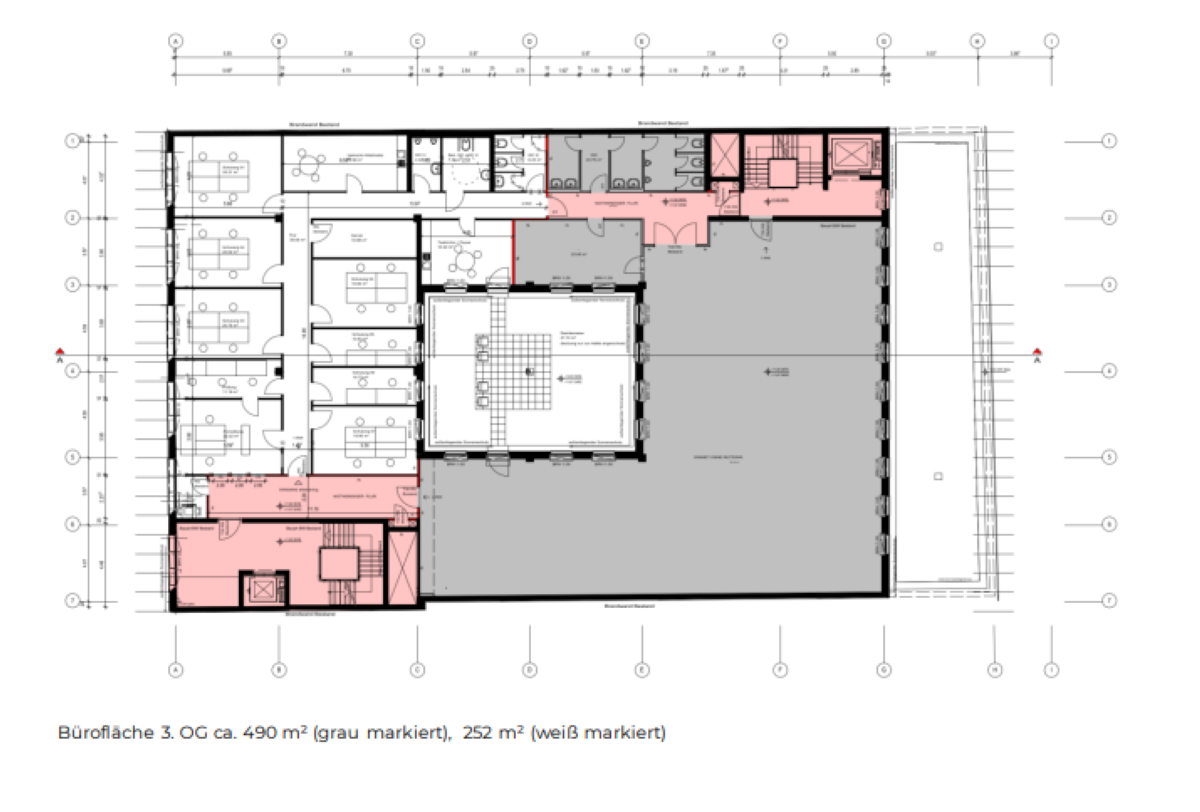 Die Bürofläche im dritten Obergeschoss kann am Stück oder bei Bedarf auch geteilt angemietet werden.