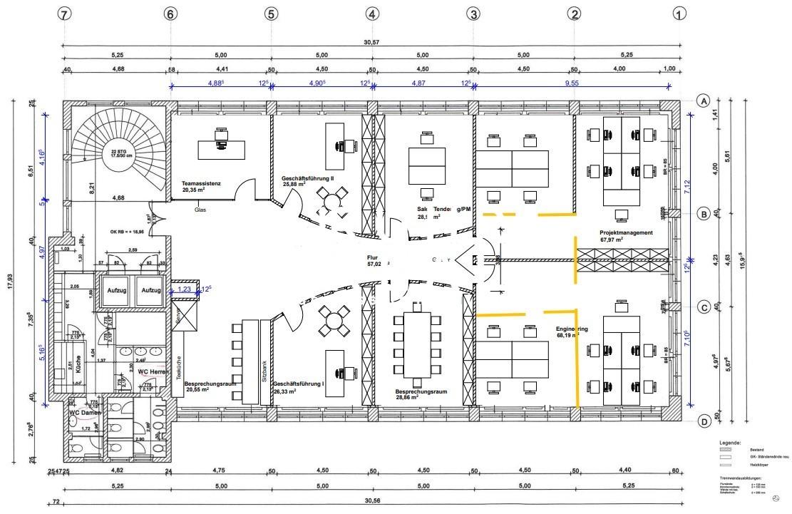 Im LESKANPark stehen mehrere Büroeinheiten in unterschiedlichen Häusern und Obergeschossen zur Verfügung: Haus 5, 2. OG mit 561,75 m² (sofort) sowie Haus 5, 3. OG mit 344 m² (sofort), beide mit Küche und Aufzug und als grundrissanpassbar beschrieben; zusätzlich Haus 41a, 2. OG mit 282 m² (sofort), unmöbliert, grundrissanpassbar, jedoch ohne Küche und ohne Aufzug. Perspektivisch verfügbar sind Haus 3, 5. OG mit 441 m² ab 01.04.2026 (u. a. Domblick, Klimaanlage, Küche, Aufzug) sowie Haus 65, 3. OG mit 400 m² ab 01.04.2026 (Neubau 2023, Aufzug).