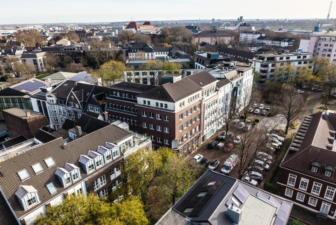 Das Bürogebäude befindet sich direkt am Damm im Duisburger Norden. Die A40 und die A59 sind nur wenige Fahrminuten entfernt. ÖPNV-Verbindungen befinden sich in fußläufiger Erreichbarkeit. Zum Düsseldorfer Flughafen sind es rund 25 Fahrminuten. Verschiedene gastronomische Angebote befinden sich in der direkten Umgebung und sorgen für eine tolle Nahversorgung.