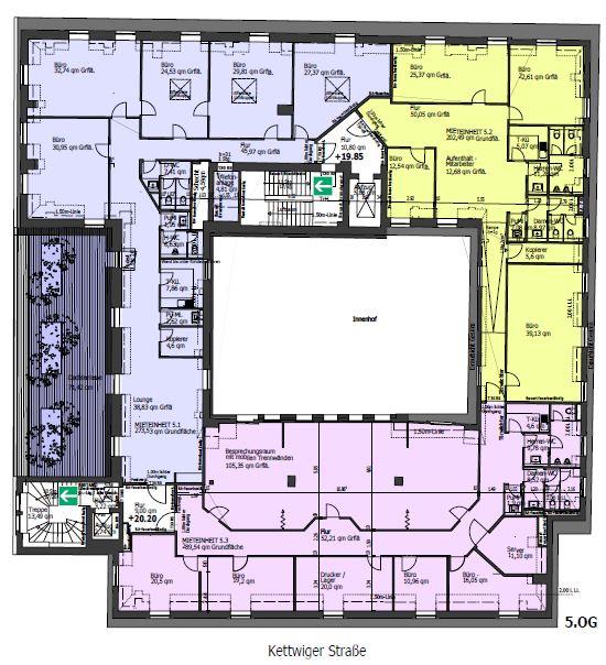 Die vakanten modern ausgebauten Büroflächen befinden sich im 3., 4. und 5. Obergeschoss dieses sehr gepflegten Büro- und Geschäftshauses, welche über zwei Personenaufzüge erschlossen werden. Die Altbauimmobilie wurde aufwendig vom Eigentümer modernisiert und ist als eine der stilvollsten Immobilien in der Essener Innenstadt zu bezeichnen. Darüber hinaus profitiert das Objekt durch seine zentrale Lage im Citykern von Essen.