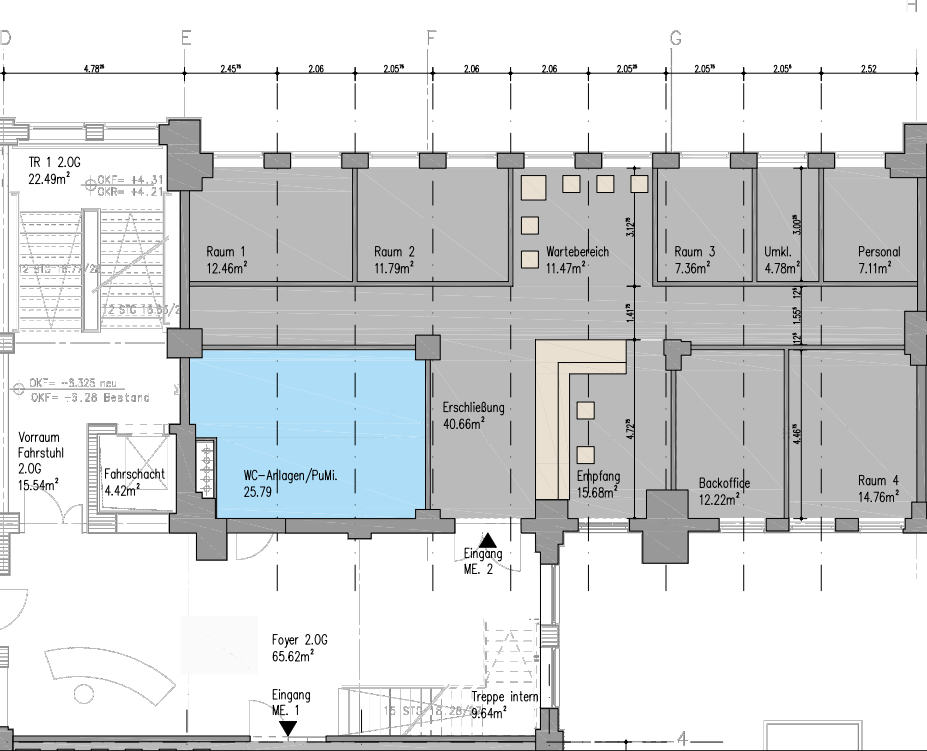 Zur Zeit stehen im 3. OG folgende Flächen zu Verfügung: