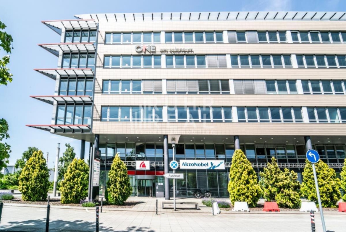 Die Büroflächen zeichnen sich durch eine moderne und hochwertige Ausstattung aus. Mit Deckenhöhen von ca. 3 Metern bieten die Büroräume ein großzügiges Raumgefühl, das durch großflächige Fensteranlagen zusätzlich unterstützt wird. Für angenehmes Raumklima sorgen sowohl eine Klimatisierung der Büroräume als auch separate Kühleinheiten für Serverräume. Ein innen- und außenliegender Sonnenschutz ermöglicht eine optimale Licht- und Temperaturregulierung.