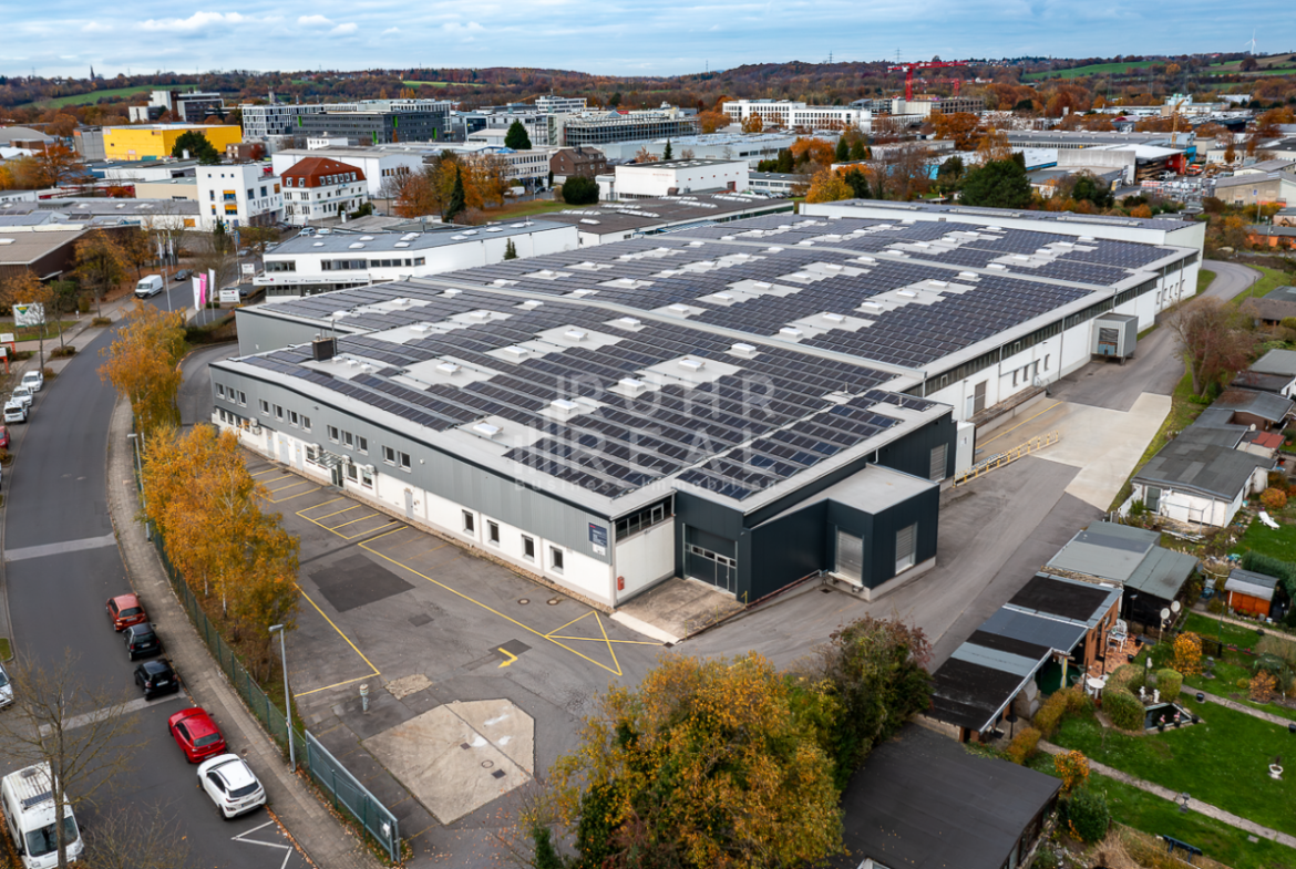Diese Lager- und Produktionsfläche befindet sich auf einem ca. 15.250 m² großem Grundstück, welchem komplett umzäunt ist. Das Objekt ist freistehend und kann mit bis zu 40t-LKW umfahren werden. Die ca. 9.385 m² Hallenfläche ist in 4 Brandabschnitte unterteilt, welche untereinander durch mehrere Tore verbunden sind, verfügen über eine Deckenhöhe von ca. 5,50-6,00 m UKB und sind mit einer RWA ausgestattet. 2023 wurde das Gebäude komplett modernisiert und das Dach wurde erneuert, ebenfalls wurde eine PV-Anlage auf dem Dach installiert, welche eine Leistung von 1 Megawatt Peak hervorbringt. Die Andienung erfolgt über 5 (beheizte) Rampen sowie über 4 ebenerdige Rolltore. Zur Lagerfläche gehören ebenso ca. 317 m² Büro-, 367 m² Sozialfläche und ca. 87 m² Technikräume. Die Bodentraglast beträgt bei den Hallen 1-3 liegt bei ca. 15t/ m², Halle 4 hat eine Bodentraglast von ca. 5t/ m².