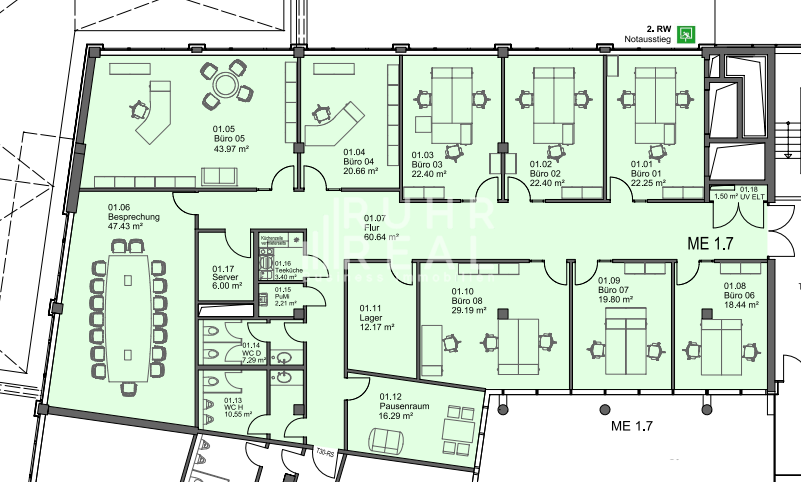 • ME 1.5 | 1. OG: ca. 289,10 m² Bürofläche