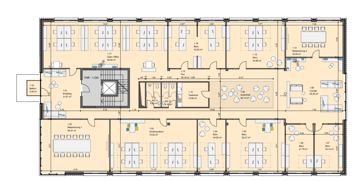1. OG: ca. 731,10 m² Bürofläche zu 15,50 EUR/m² zzgl. 2,80 EUR/m² Nebenkosten
