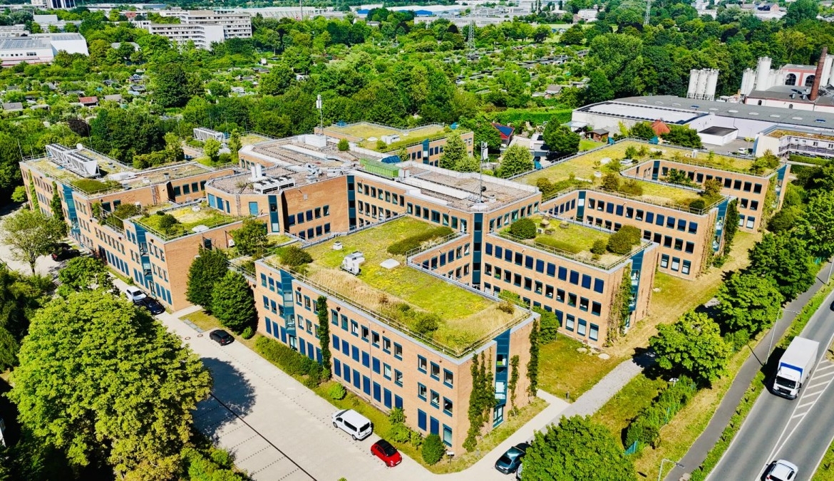 Dieser attraktive Gebäudekomplex bietet helle und individuell anpassbare Büroflächen auf verschiedenen Etagen.