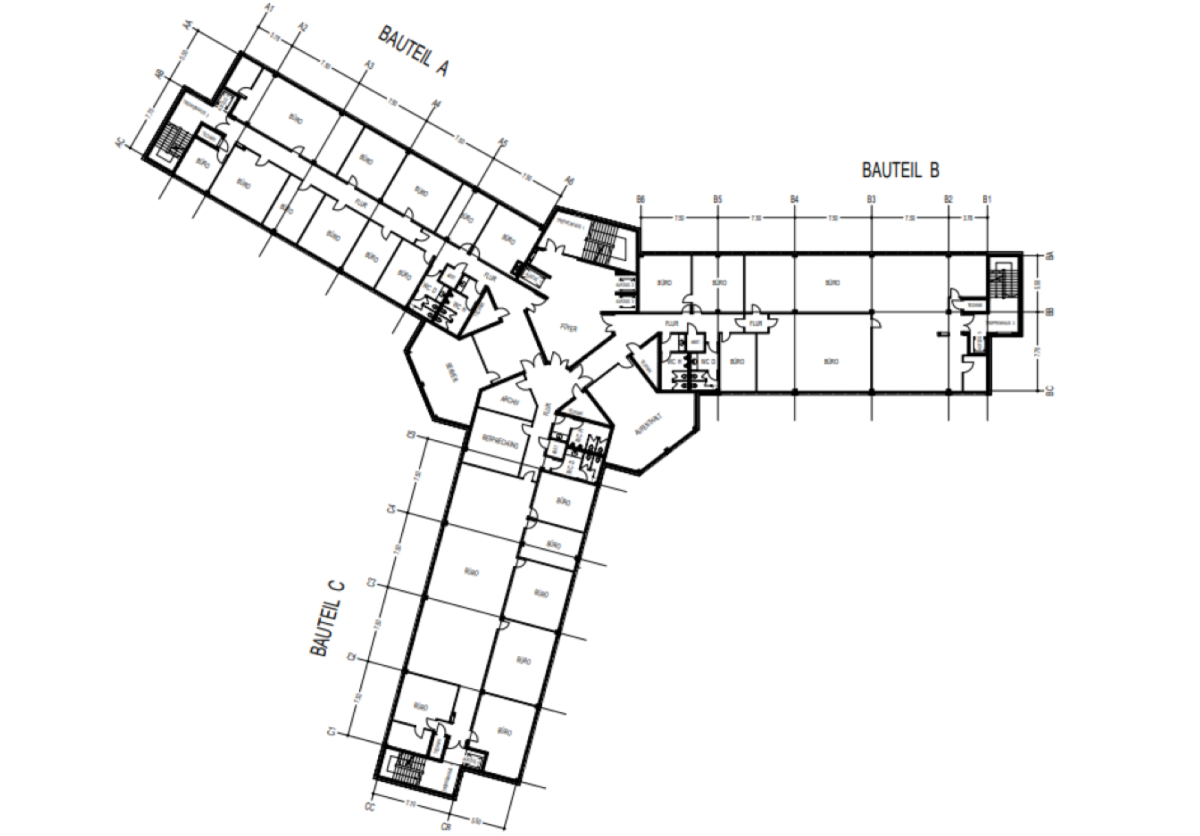 1. OG, Bauteil C: 615 m² bis zu 718 m²